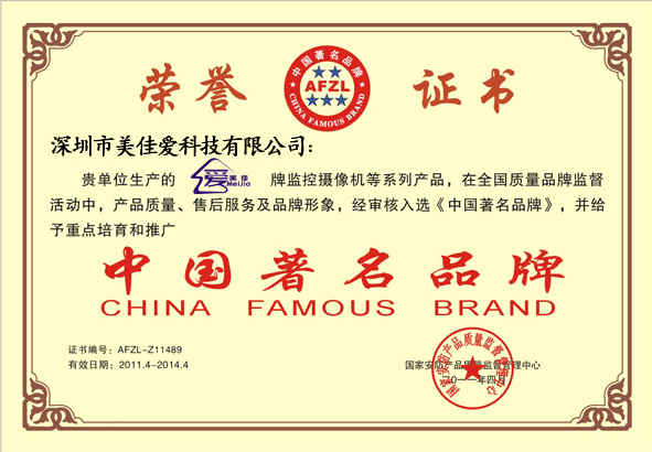 中國(guó)著名品牌證書(shū)副本